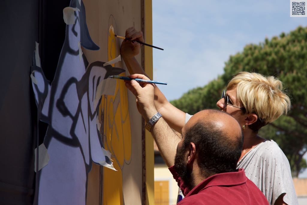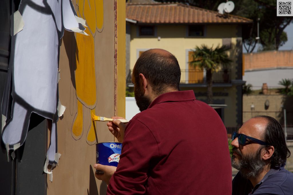 L’associazione Valorizziamo Veio con il suo Presidente Marco Petrelli ha chiesto ed avuto dal Presidente del Municipio XV Daniele Torquati l’autorizzazione all’iniziativa svolta dalle esperte mani delle artiste Lavinia, Orsola ed Arianna che, insieme allo stesso Marco Petrelli con la collaborazione di Fabrizio Vistoli e di altri volontari lì presenti, hanno completato l’opera, con il plauso di Daniele Torquati, che poi ha avuto piacere di posare insieme a tutti, ed il Consigliere Municipale Marcello Ribera, anch’egli presente.
